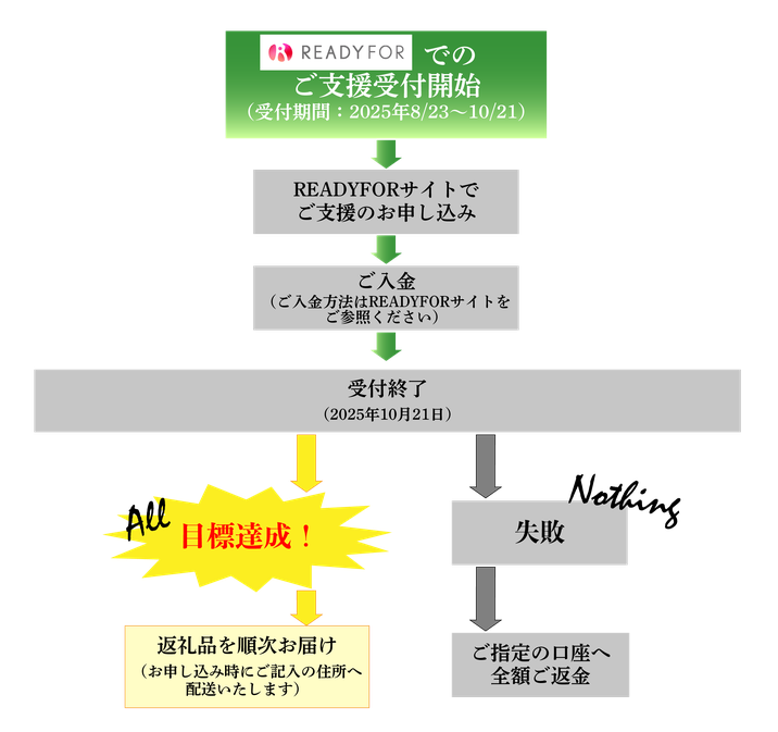 目標金額を達成した場合のみご支援金をいただくことができます。